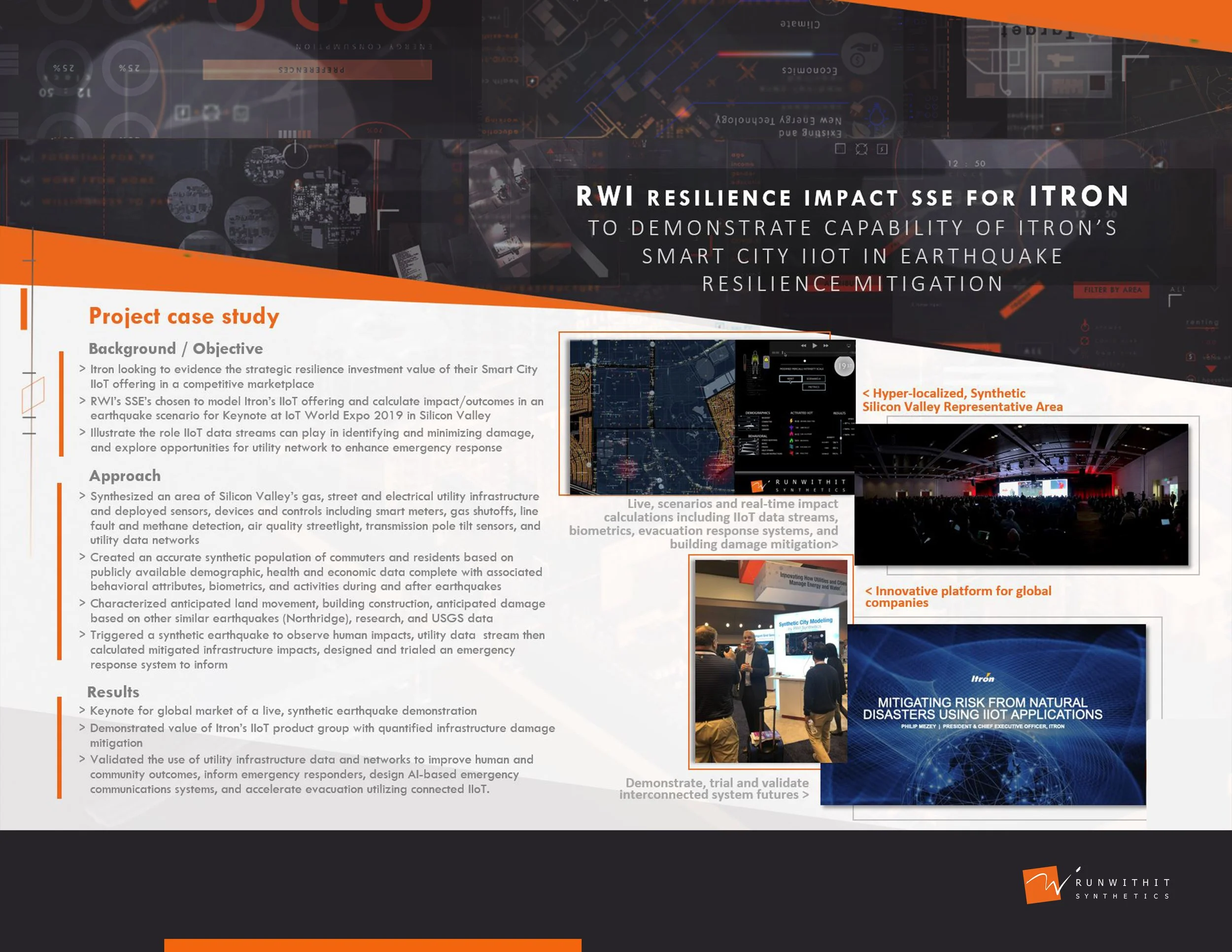 Utility infrastructure data can guide emergency responders and improve AI-driven communications and evacuation through IIoT systems. To demonstrate this, RWI synthesized Silicon Valley’s utility networks and commuter population, then simulated a ‘synthetic earthquake’ to analyze human behavior, infrastructure impact, and emergency response in real-time.
