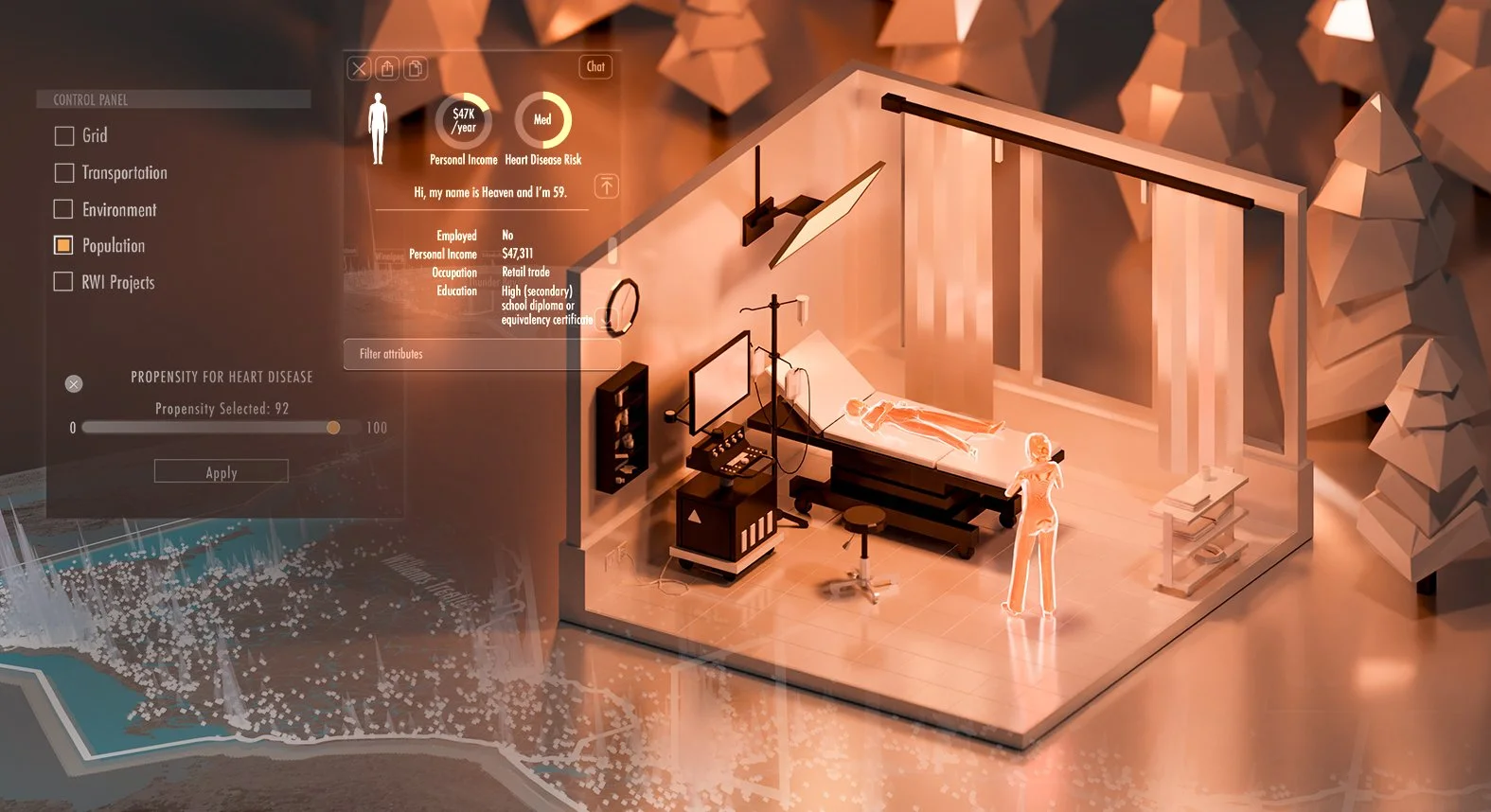 RWI's synthetic population platform enables researchers, healthcare systems, and policymakers to explore disease risk, test connected-care technologies, and evaluate interventions before real-world deployment. By combining population modelling, health intelligence, and simulation, we are helping health systems design more proactive and resilient approaches to care.